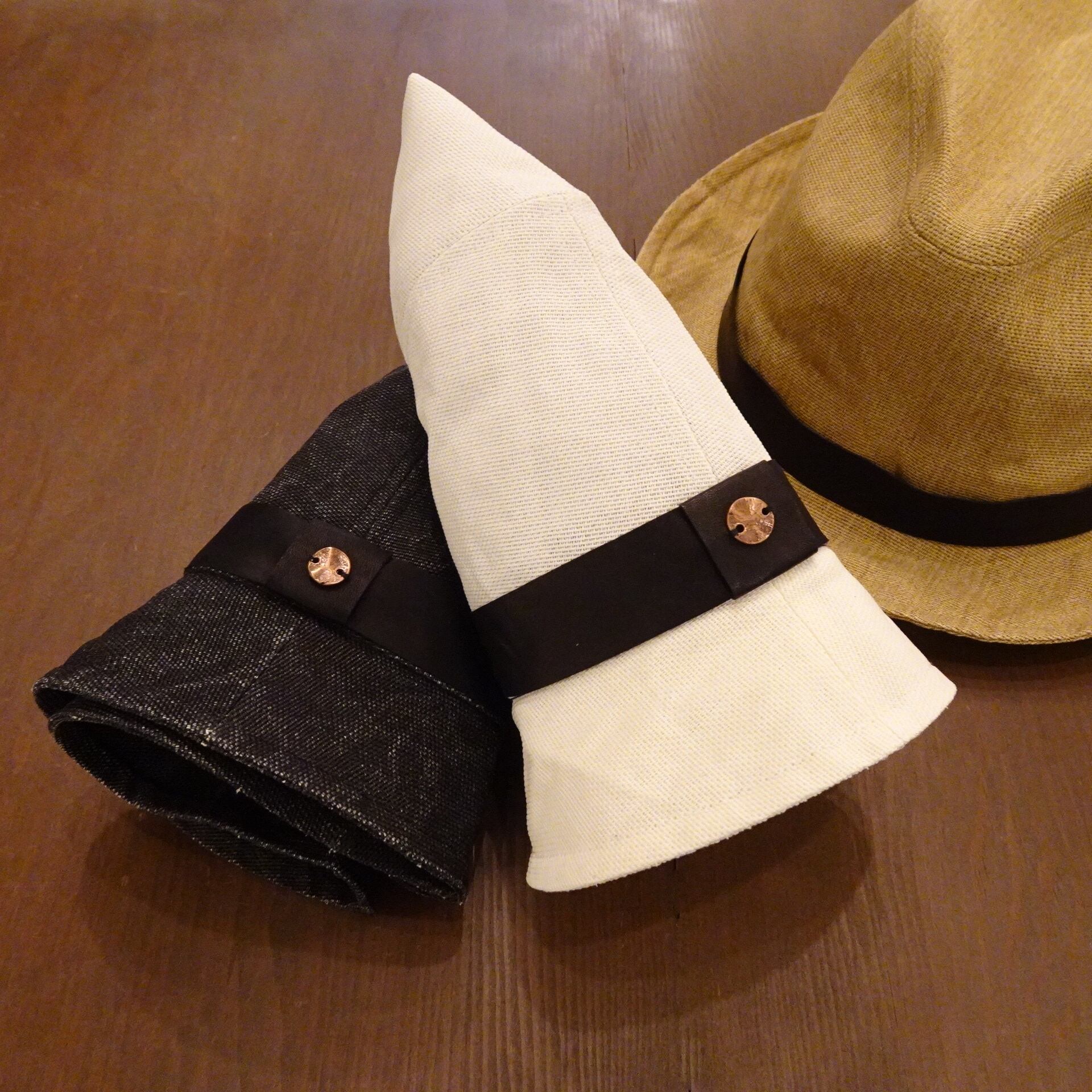 毎シーズンの定番、ペーパークロスを使った中折れ型ハット。