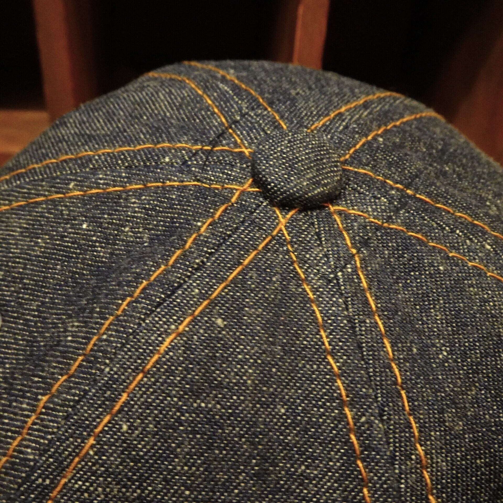 野球選手用キャップを専門に手掛ける国内工場による和製ベースボールキャップです。頭にフィットする丸みのある6枚はぎのシルエットで、ブリムのステッチワーク、肌当たりの優しい杉綾のコットンのスベリ、ブリム付け根のていねいな処理や鳩目金のパッキンなど、日本製ならではの細部にまで目が行き届いた作りも魅力です。このモデルは、1970年代のヴィンテージデニムをリプロダクトした生地を使用しており、さり気なくヴィンテージ感を取り入れたコーディネートにおススメします。