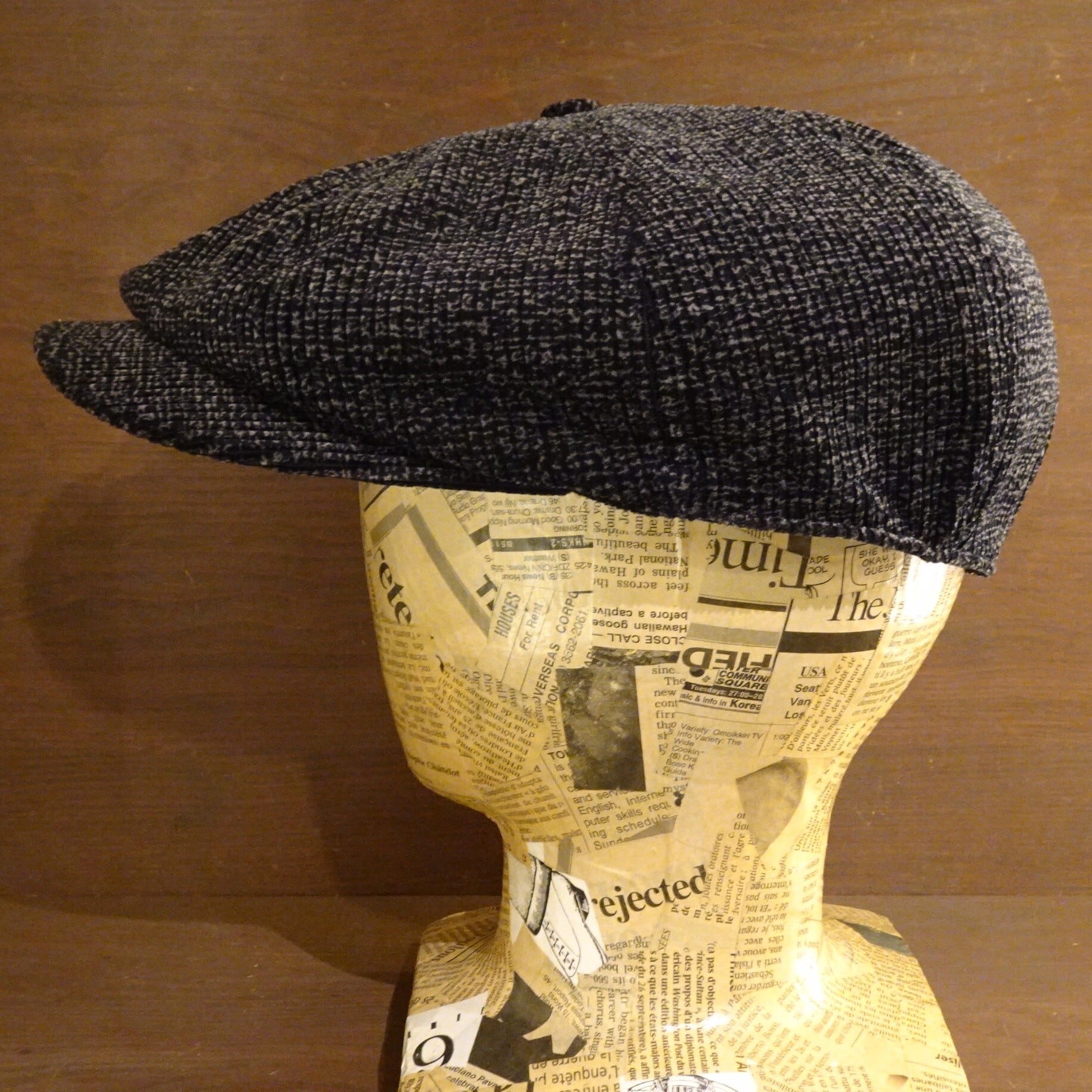 クラシカルな雰囲気のある、杢調プリントを施した7.5Wのコーデュロイで仕立てたハンチングです。長く迫り出したブリムが特徴的な1940年代当時のハンチングを再現したモデルで、この絶妙なシルエットは生地感との相性も良く、モダーンなワークテイストを感じさせる、非常に良い雰囲気に仕上がっています。型崩れを防ぐバイアステープ、ソフトな牛革のスベリなど、ヴィンテージに劣らない、しっかりとした作りも魅力です。
