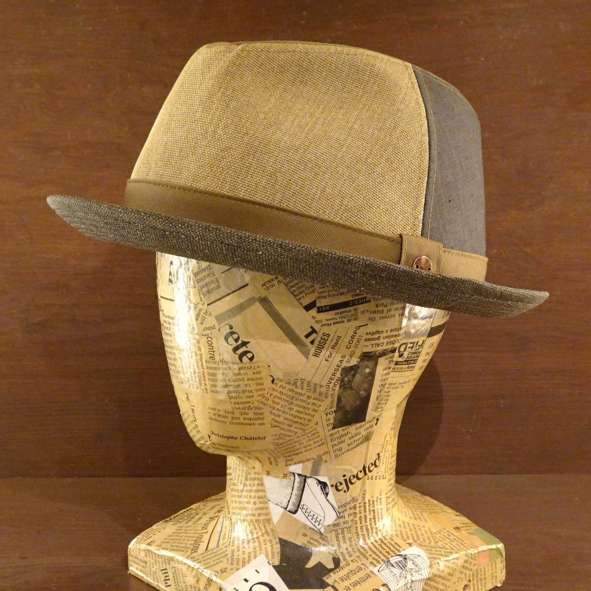和紙を素材にした軽やかなペーパークロスに上品な印象のリネンとコットン、3種類4カラーの生地を組み合わせた面白い表情のチロルハットです。軽快なシルエットは、気軽に合わせやすく、爽やかな季節のお出かけにおススメします。